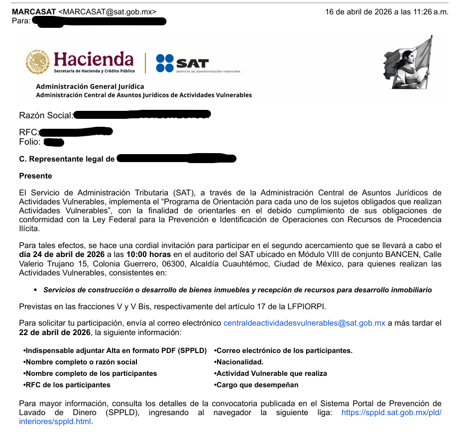 La vigilancia de actividades vulnerables podría haber dejado de ser un proceso reactivo basado en denuncias o auditorías físicas. Bajo este escenario, el SAT construiría sus casos a partir del propio padrón fiscal del contribuyente: cada CFDI timbrado sería una declaración involuntaria de las actividades que realiza. Para el sector de construcción y desarrollo inmobiliario, esto significaría que el incumplimiento de la LFPIORPI difícilmente podría ocultarse detrás del silencio o la inactividad administrativa: la bitácora de timbrados hablaría por sí sola. La corrección espontánea que permite el artículo 37 de la LFPIORPI es una oportunidad real —pero tiene una fecha de expiración que se acerca con cada mes que pasa sin actuar.